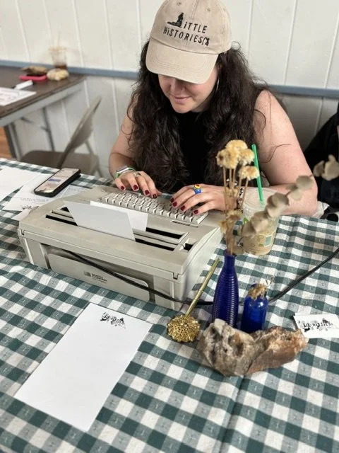 How does it work? You can hire 1-2 Lil’ Hissies (typewriter poets) for your on-site event. You tell us when and where, and we bring the rest: retro typewriters, Little Histories-branded card stock (or custom stationery for a fee), and a good time.